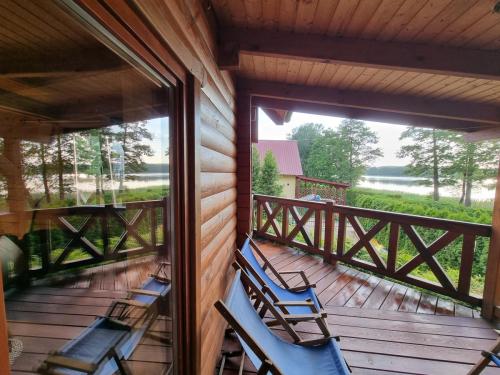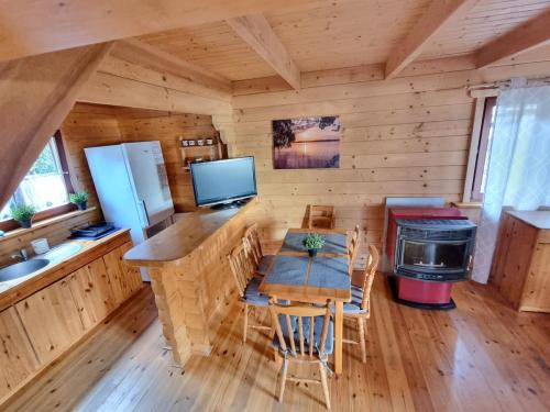 Domek 8 osobowy z dostępem do jeziora ( 15 metrów) , to komfortowy domek całoroczny, składający się z salonu z aneksem kuchennym, łazienki oraz dwóch sypialni na poddaszu. Został zaprojektowany z myślą o 6-9 osobowych rodzinach, gościach podróżujących w niedużych grupach.